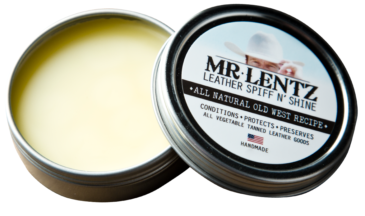To keep your goods in top quality, this container of my own handmade all-natural leather condition (Spiff N’ Shine) comes free with every leather item.