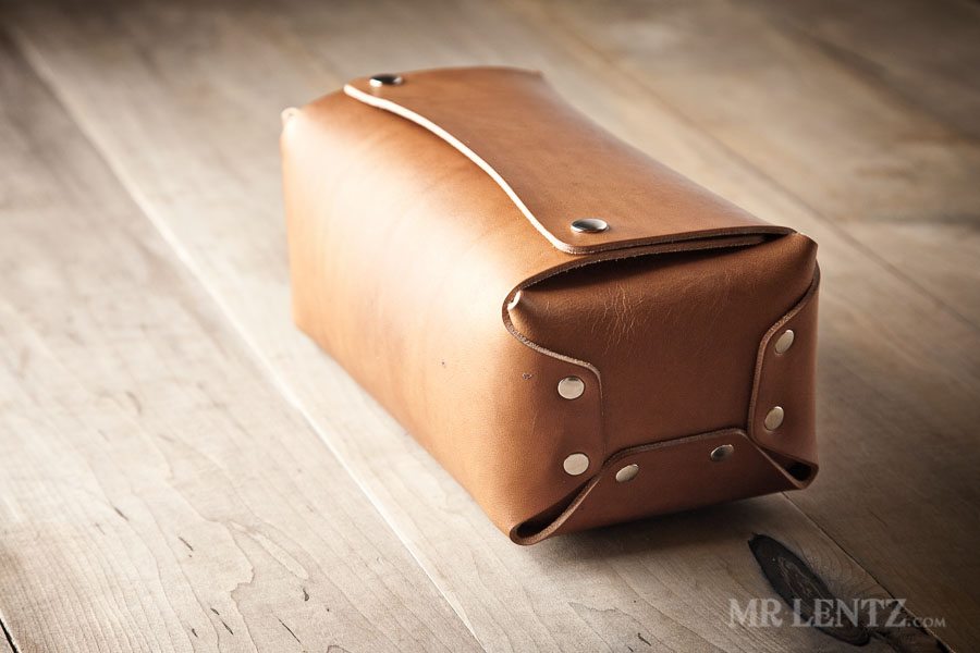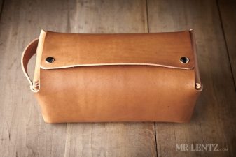The Mens Toiletry Bag measures 9.5 inches wide x 4 inches tall x 5 inches deep on the exterior (241mm x 101mm x 127mm).