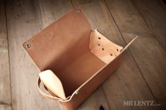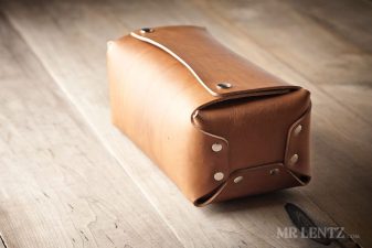 Please note that I do not use any toxic materials in my shop or process and have chosen not to coat my leather goods with toxic water resistant sprays. I do use an all natural mixture of olive oil and beeswax to help with water resistance, but water on the outside of the case is best avoided to prevent spotting. You may choose to coat your case with water repellant sprays as needed. A decent natural one exists called Bee Natural Resist and Finish.