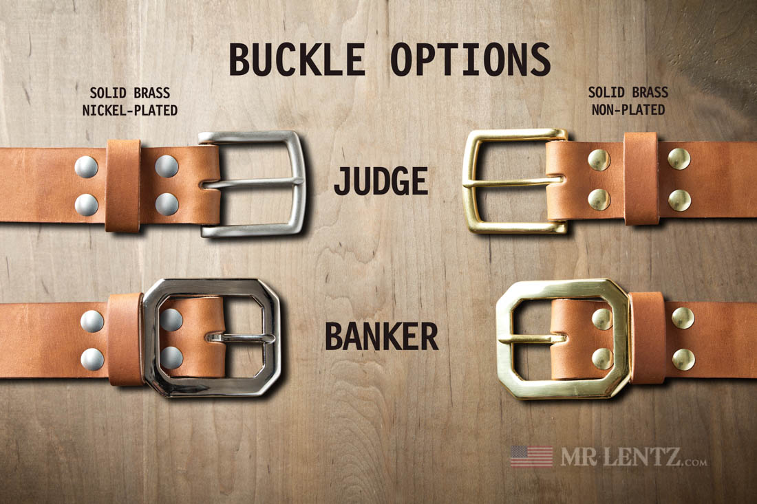 All buckles are available both in Solid Brass as well as Nickel Plated Solid Brass. Exact buckle shapes may vary slightly over time as our buckle supplier alters the design.