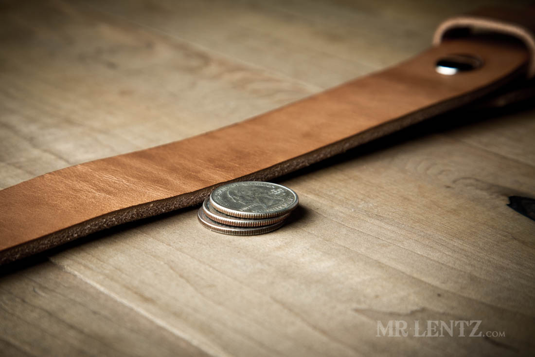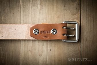 Please see the size chart photo for details on how to get your correct belt size. Don’t use pants or waist size as it will not work. The width of the belt is approximately 1.5 inches and the leather measures just over 3/16″ thick. Made entirely from one piece of Full Grain Leather, not too many belts are made with this high a quality of leather (typically mass-produced goods use two layers of thin ‘Bonded Leather with cardboard sewn in between for bulk, no joke!)