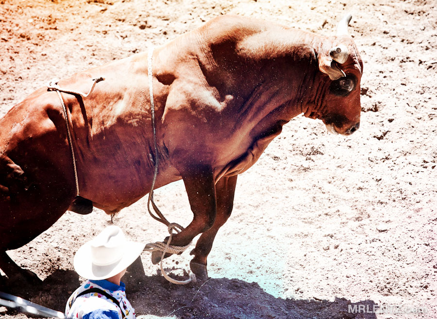 (Above) The first few times I saw this I had no idea what the hell was going on. It was confusing seeing a cowboy hold up a small jar of milk to a roaring crowd of enthusiasts. This is one of the more interesting events – not sure exactly what it is called, but basically the cowboy ropes one of the legs of the cow, then his partner has to run up behind it as it kicks frantically, and milk it a few ounces worth!