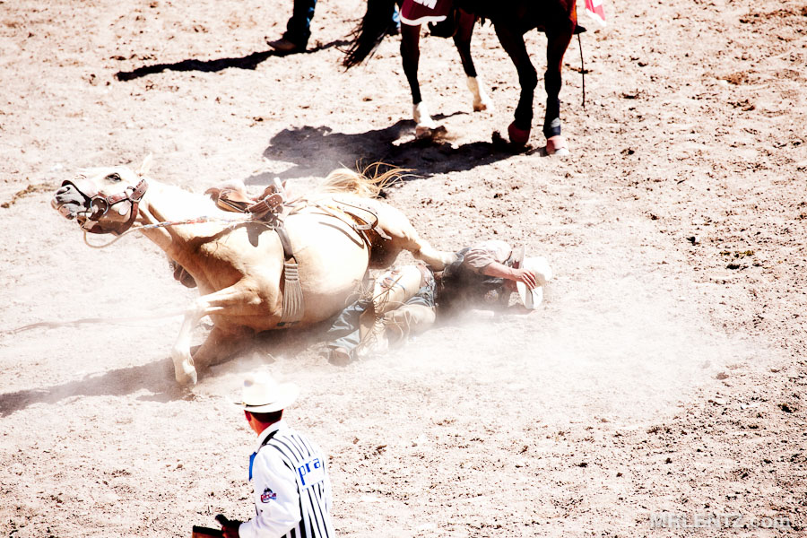 Bring on the rodeo! Here are a few shots that I took of some pretty serious gatherings of cowboy and beast. The top ones are from a small town in North Western Colorado called Meeker. This is the type of place where the entire town shows up for the pancake breakfast, stays for the main street parade, goes home to sip some afternoon lemonade, then heads on over to the arena for some good ol’ fashioned ro-de-o. The shots below Meeker were taken at the ‘Daddy of em’ all’ – the Cheyenne, WY Frontier Days Rodeo. In Cheyenne, they really do it right. Mixing events and constantly keeping the crowd in awe – if you are ever out this way at the end of July, it is absolutely mandatory that you come and see this.
