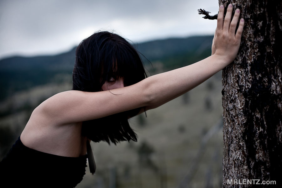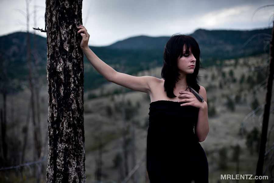 When I set up this shoot, I planned out quite a few of those elements according to the theme of Dark, Twisted, Mysterious. I chose the model, location, clothing, time of day, exposure, poses and editing techniques. One thing you can’t plan for is the weather. I originally wanted shots with a very low and direct sunlight just before it would set. However, by 3pm it had clouded over and the wind picked up. In retrospect this worked to our advantage and actually added another convincing element to the shoot. Wind can be a blessing in disguise and the clouds worked to darken the background and diffuse the light on Adoree. The rain however, is another story.