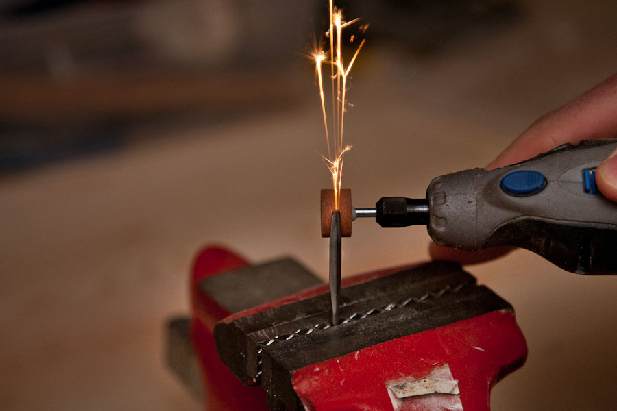 Steadily, with one hand on the dremel at 8,000 RPM and the other on my camera trigger I went at it. Slowly, carefully, checking all sides for evenness. Taking the time to test the piece out for its shape.