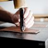 When branding a wallet or accessory there is a 6 character limit due to the complexity of fitting longer text in the machine and aligning it to the wallet. This option allows you to fit up to 10 characters, but keep in mind that the overall look may be slightly skewed/tilted due to the challenge of aligning a super-heated branding tool. This fee is in addition to the Branded fee you pay when selecting your wallet. So please enter what you can in the wallet page first.
