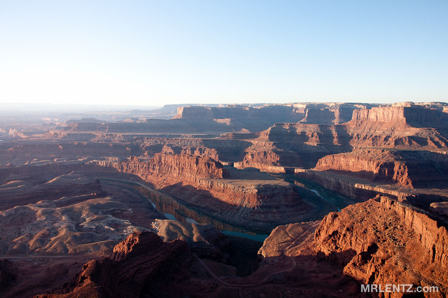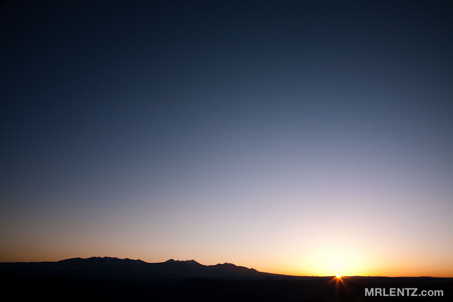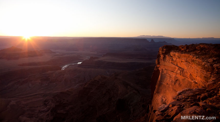 If you ever want to hear the most silent silence that is possible outside of a vacuum chamber…head out to the desert. Get away from the roads, and kick yourself out of bed at least an hour before sunrise. That’s what I did on the morning of the Lunar Eclipse. With no time to spare I threw everything into my car and headed out of town towards a place called Dead Horse Point high on the red rock cliffs overlooking the desert. Upon arrival I loaded up on m&m’s and a bit of diet coke (official last-minute road trip breakfast) and stepped out of the car into 10 degree weather armed with my camera. These cliffs are truly spectacular, you can walk right along the edge and peer straight down a vertical drop of over 1000 feet to the canyon floor. Sometimes the edges are balancing on thin layers of cracked earth that slowly split with the freezing and thawing of rain water.