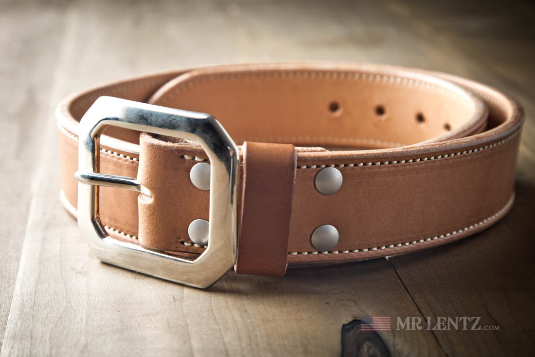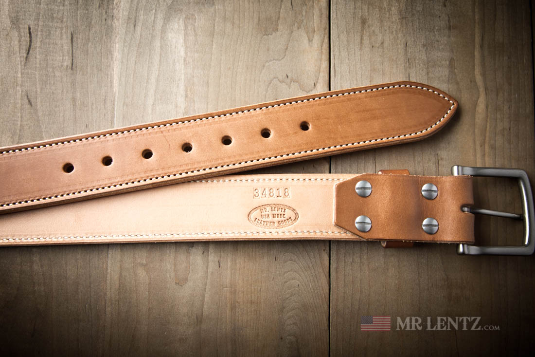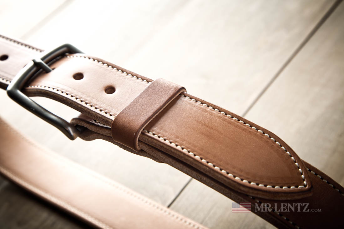 By far the strongest gun belt around. You can load up this belt with a full size weapon, several mags and probably a bit more. I use a high grade of spring steel sandwiched in between the leather starting just before the tightest hole setting and ending just before the chicago screws. The belt is highly resistant to pinching on the width and bowing overall. It’s actually still fairly comfortable to wear.