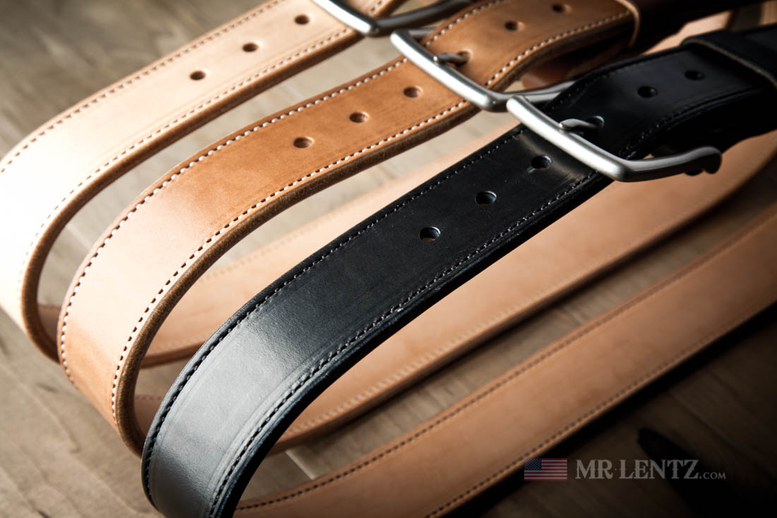 An alternate to the steel core is the nylon webbing reinforcement. Webbing is known for the fact that it will not stretch and when placed inside a double layer full grain belt, it does it’s job well to help prevent stretch. The leather I use on these belts generally will not stretch much at all after the initial few weeks of break in, but over time if you carry often or carry heavy, then this may be a good compromise.