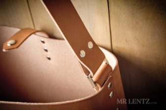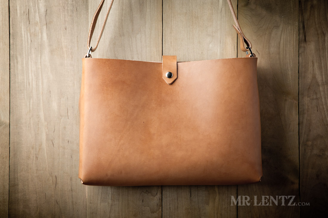 Please note that Mr. Lentz does not use any toxic materials in his shop or process and has chosen not to coat his leather goods with toxic water resistant sprays. He does use an all natural mixture of olive oil and beeswax to help with water resistance, but water on the outside of the case is best avoided to prevent spotting. You may choose to coat your messenger bag with water repellent sprays as needed.