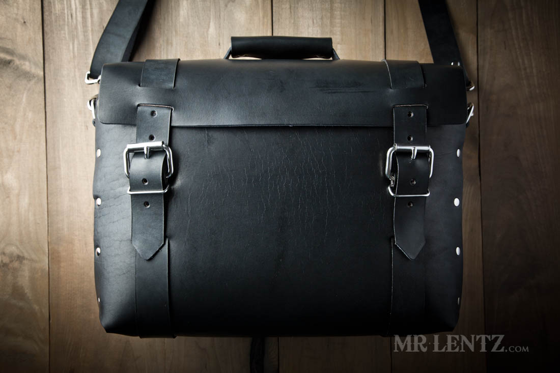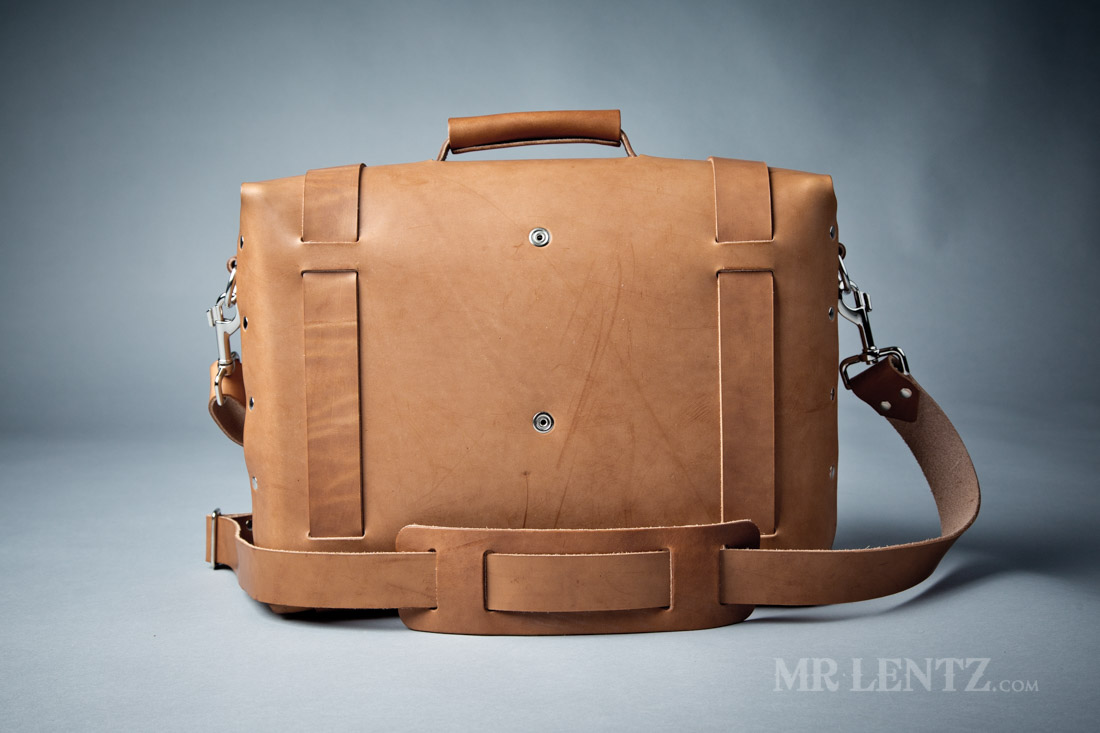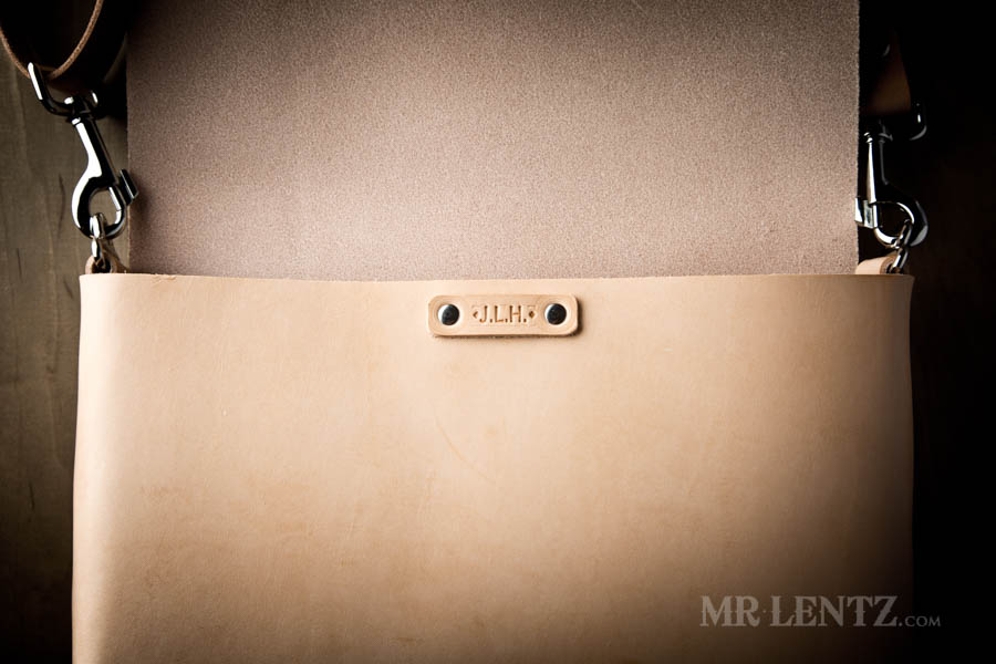 For this bag the personalization will go on a small rectangular tag riveted to the main body just under the flap.