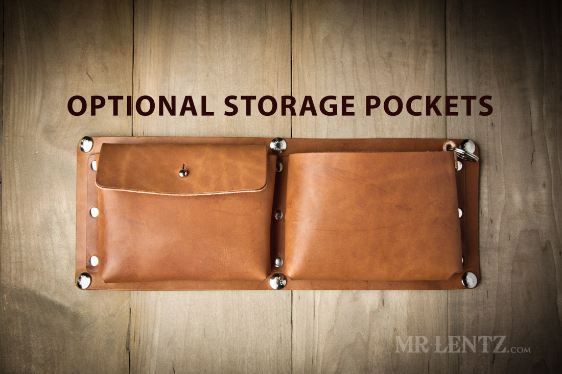INTERIOR POCKETS ADDON: These are 2 pockets total attached to the interior via 6 heavy duty snaps. Please note that if you do want the storage option installed – it must be selected at the time of ordering the bag, storage cannot be installed at a later date. The pockets are both 6 inches wide x 5 inches tall, and one contains a flap closure, the other is open with a small keyring attachment.