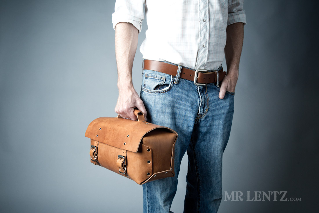 Built to last without a stitch in sight, my Men's Leather Work Bag will help you carry your goods on a daily basis without wearing out. Simple, rugged and made for heavy use with the best U.S. Full-Grain Leather, solid brass rivets, and stainless steel buckles. It comes with my 100 Year Guarantee against defects, so you can buy with confidence. This bag will get better and better with age, so throw it around a bit and put it to work. Another version of this bag made with exterior straps can be found here. Please note this bag may come with markings, small scratches and other manly features, it is a testament to real authentic Full-Grain leather, and a part of what this bag is all about. Handle it rough and it'll be just fine.