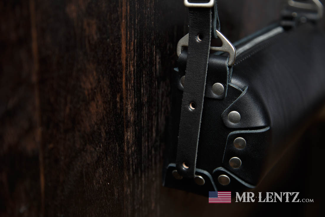 The strap is adjustable and will hang down from the shoulder “drop length” at a range of approximately 25 inches at its longest, to 18 inches at its tightest.