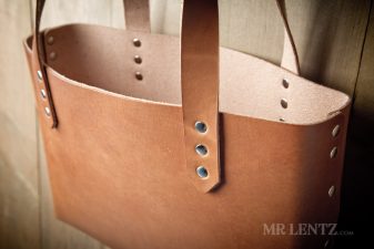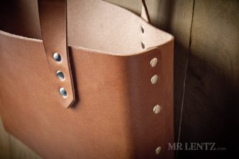 Please note that Mr. Lentz does not use any toxic materials in his shop or process and has chosen not to coat his leather goods with toxic water resistant sprays. He does use an all natural mixture of olive oil and beeswax to help with water resistance, but water on the outside of the case is best avoided to prevent spotting. You may choose to coat your messenger bag with water repellent sprays as needed.