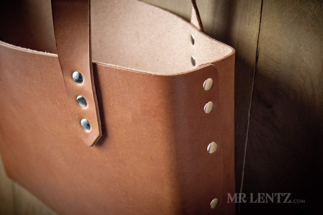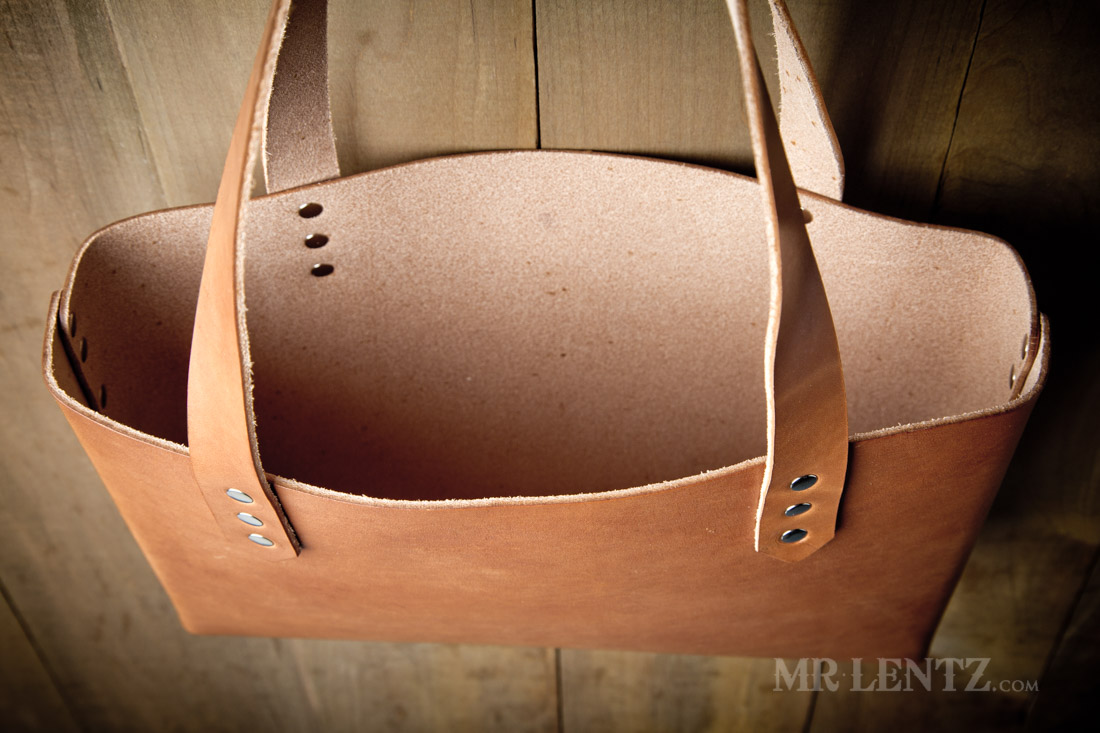 The Leather Handbag measures 13 inches wide x 9.5 inches tall x 2.5 inches deep on the exterior (330mm x 241mm x 64mm).