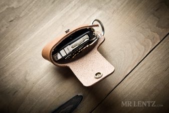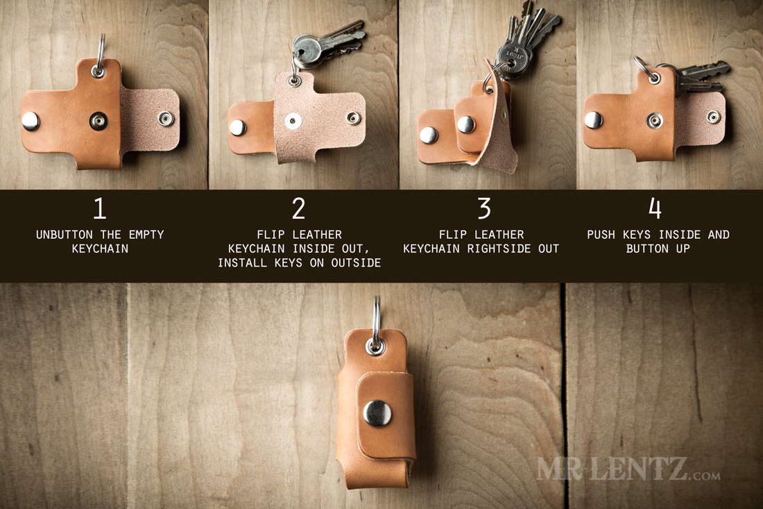 Cut from thick U.S. Full Grain Leather, includes stainless steel keyring and hardware is solid brass with nickel plating. To install your keys please see the image in the listing showing all steps, it’s simple but will make more sense visually.