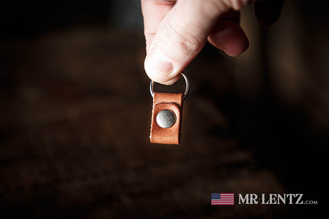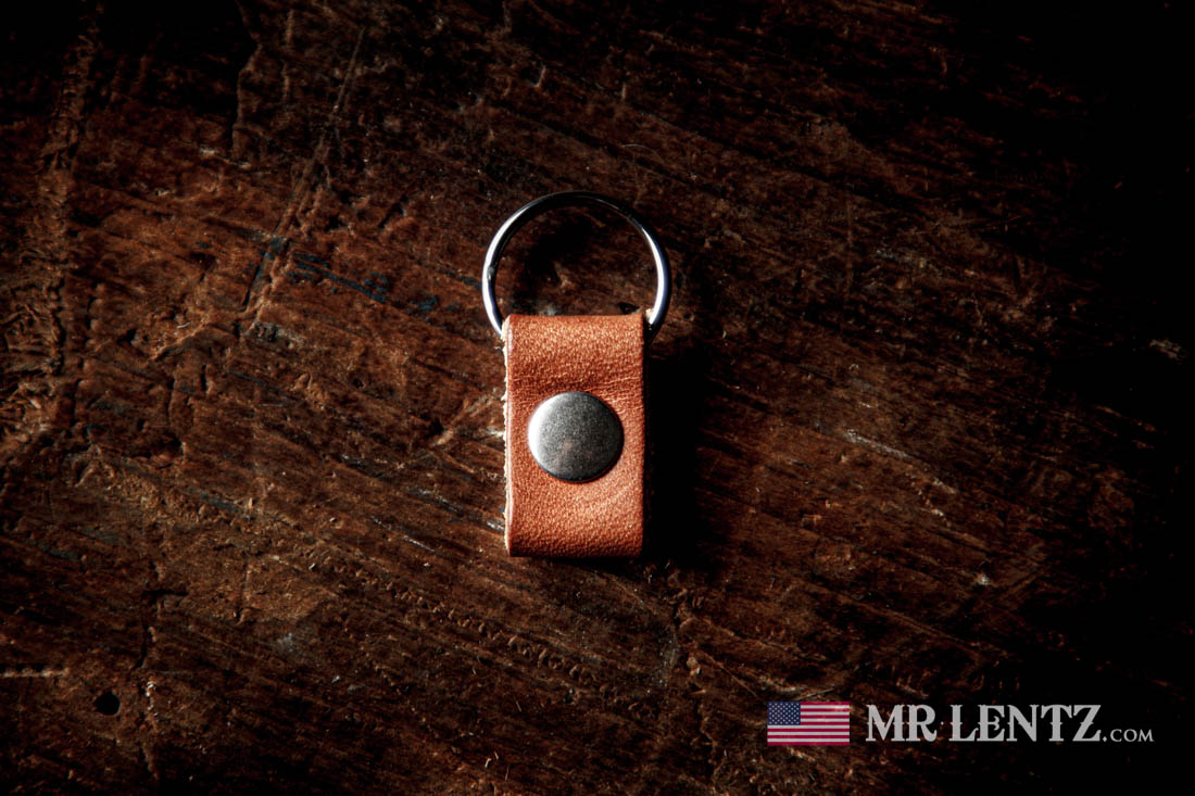 If you're looking for a little sampler of our high end leather, brass (rivet), and stainless steel (split ring) this tiny keychain is a great start. There's no other keychain quite like it - and you can watch as the colors develop that rich patina my wallets, bags and belts are known for. Currently available in two colors and due to the tiny size we do not include our Spiff N Shine conditioner with this item.