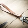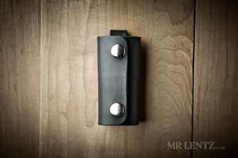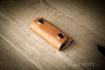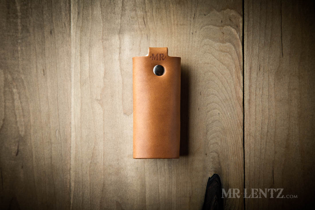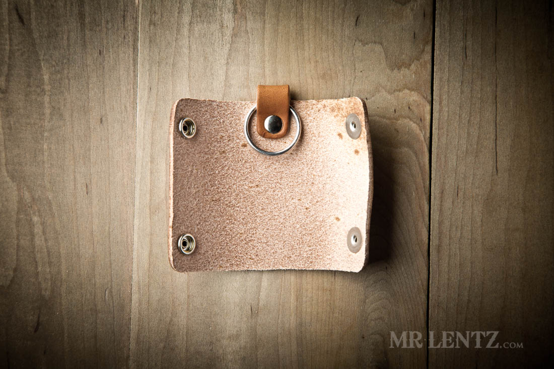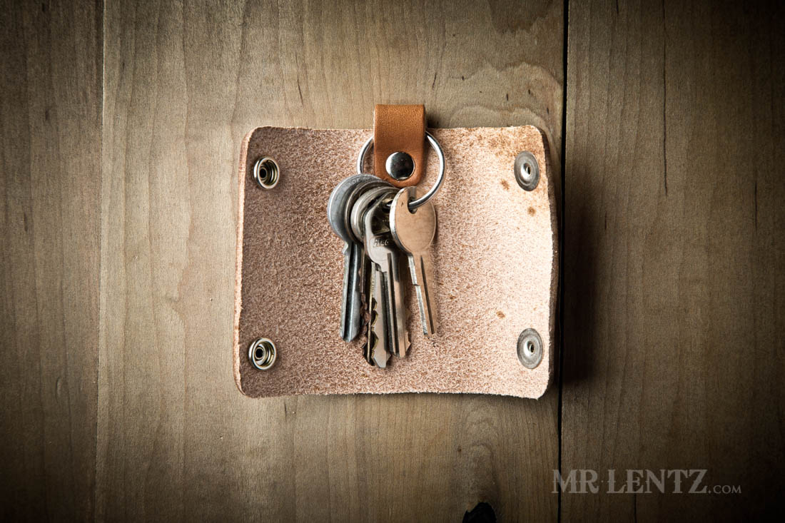 This piece includes a stainless steel split ring, solid brass nickel plated rivets and U.S. Full Grain Leather. When closed it measures 3.25 inches tall x 1.5 inches wide x 1 inch tall. The Key Wrap is designed to fit around 6 normal keys on the interior and an electronic car key on the exterior ring.