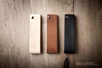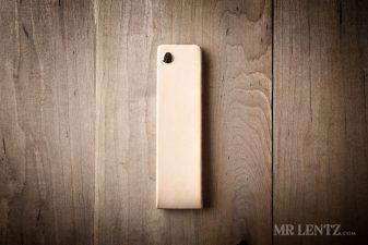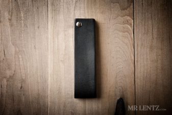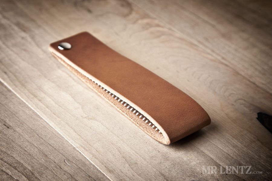 The Leather Comb Sleeve measures: 5.25 x 1.5 inches and is about 1/4 inch at its thickest point.