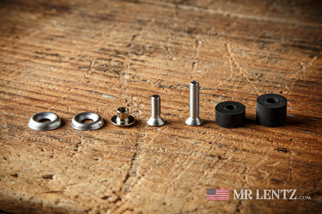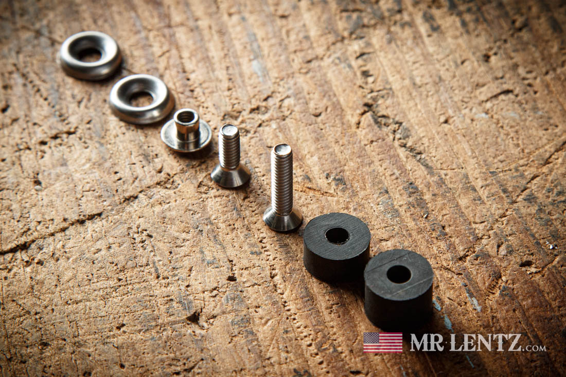 The Tension Screw Holster Hardware pack contains the hardware needed to install a tension screw on your holster. This package contains a complete set of hardware, including two different screw and rubber washer lengths for varying holster sizes. Available in a silver finish or black.