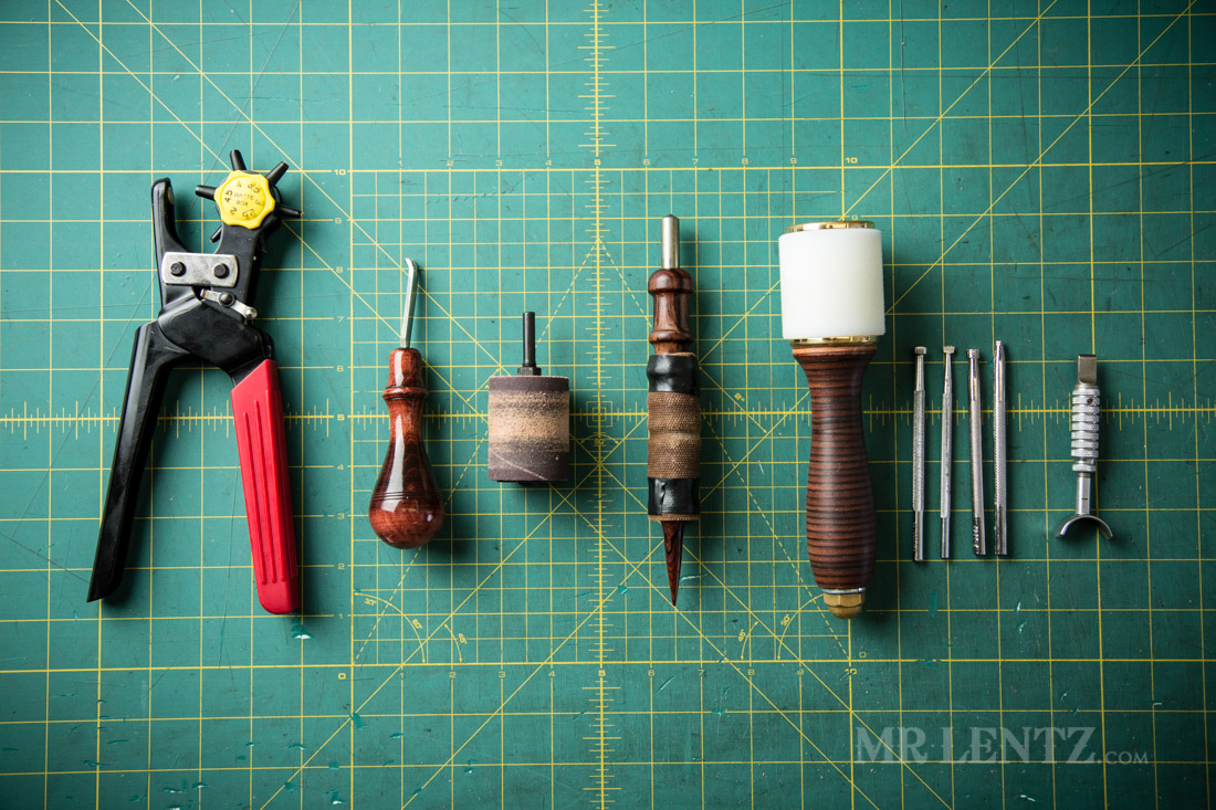 - Hole puncher, or hole punch set – helps cut out tight corners with thick leather
