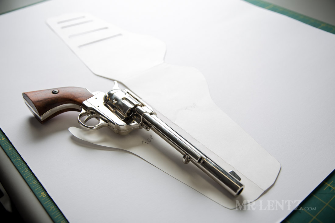 There are many ways to make a western holster, certainly ones that are quite a bit more precise as what I’m about to show you. However I realized after going through a bunch of those long and detailed posts, it kinda took the fun out of making the holster and made it a bit stressful. So – what I’ve done here is kind of took the key points and made them into an easy to follow guide to setting up your template.