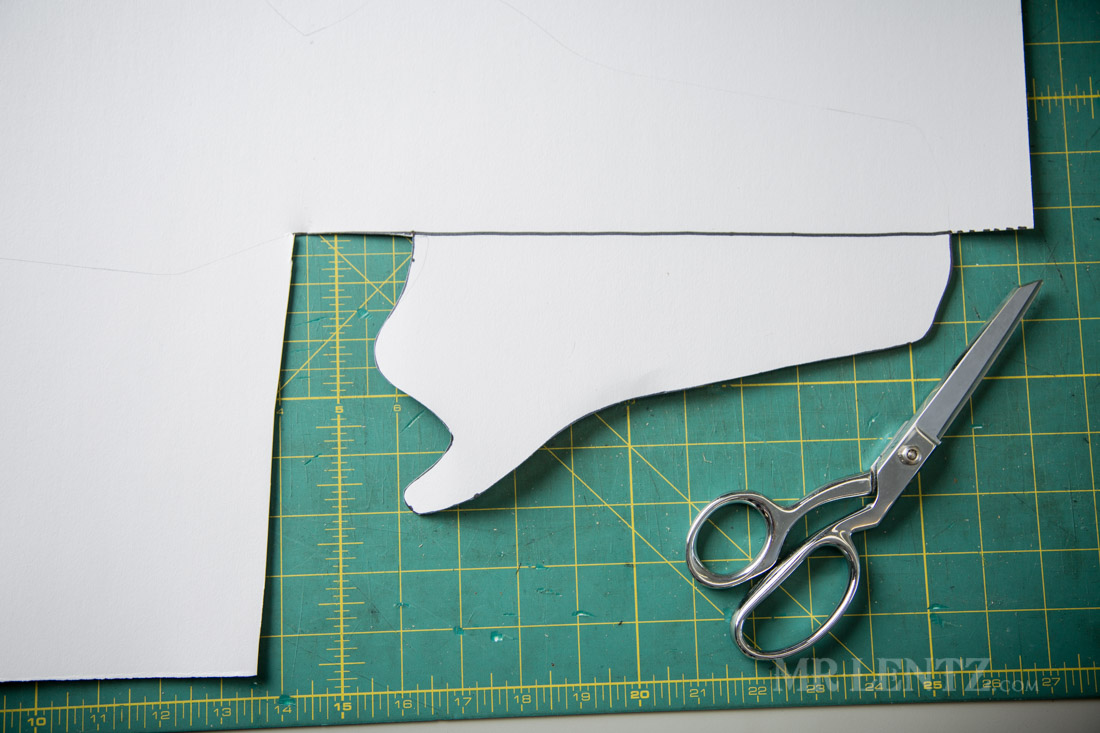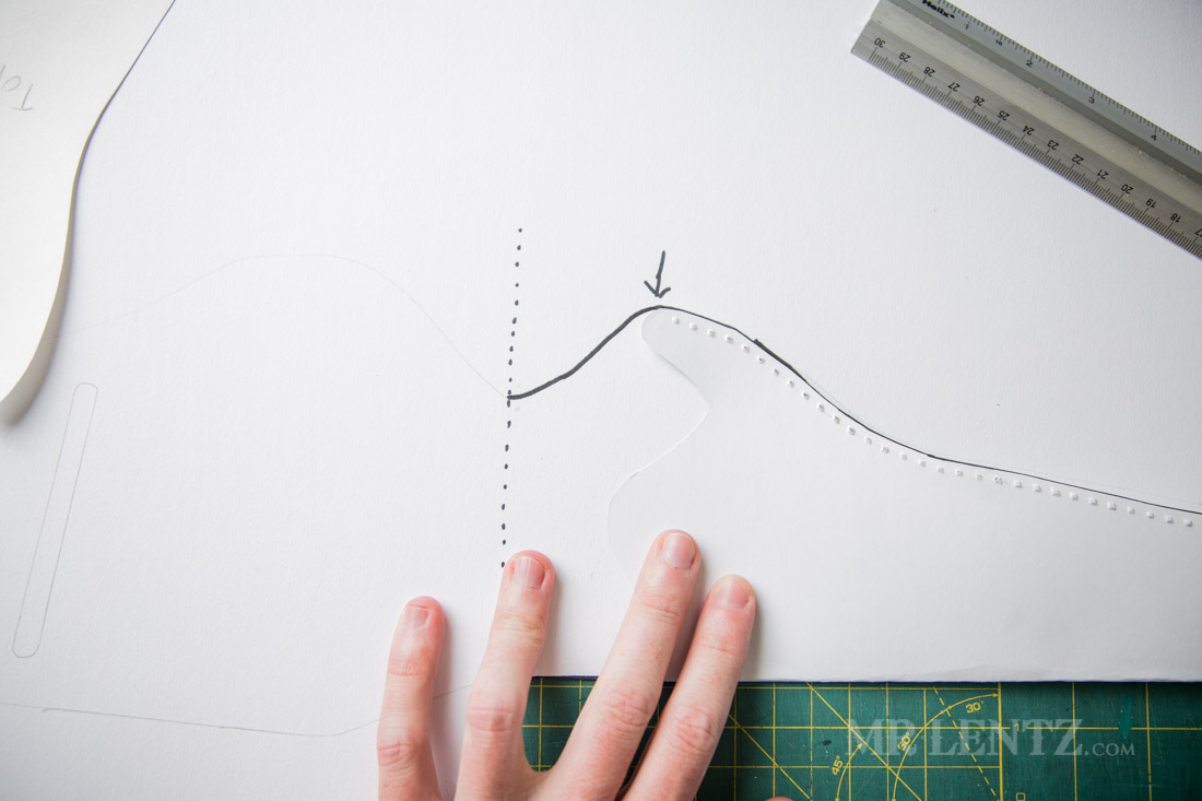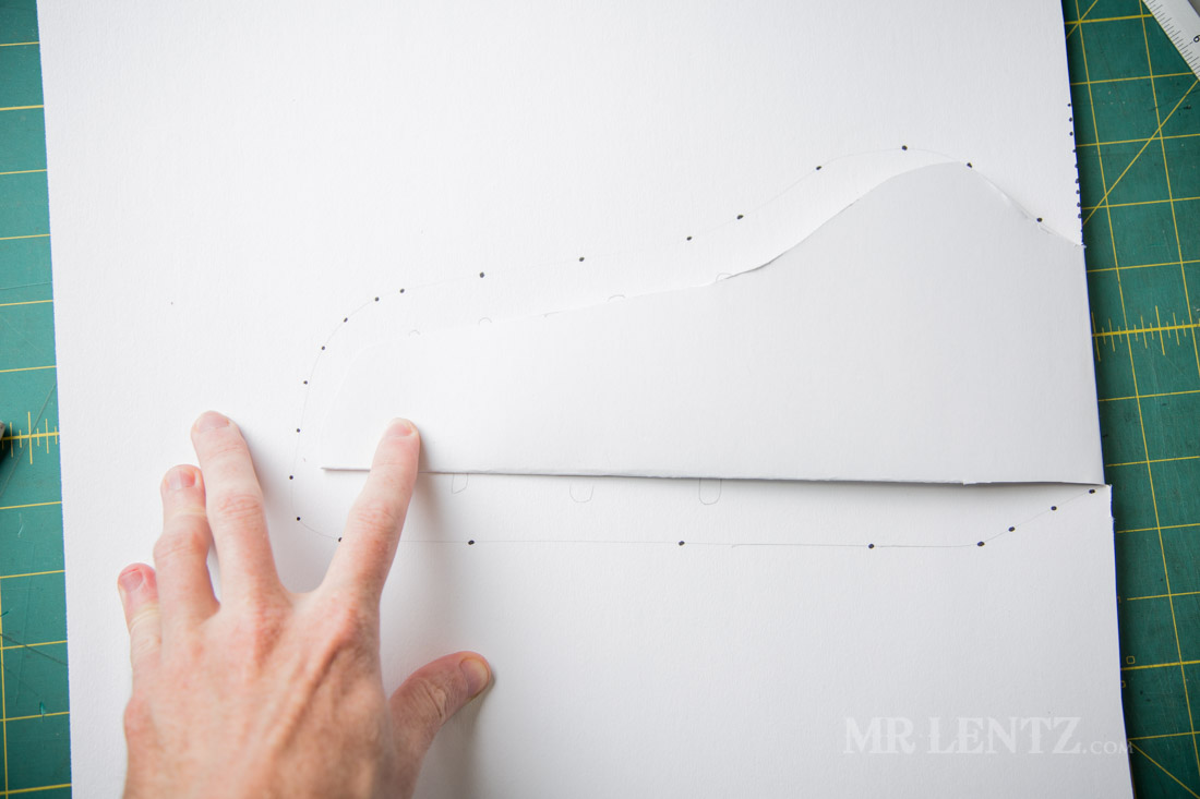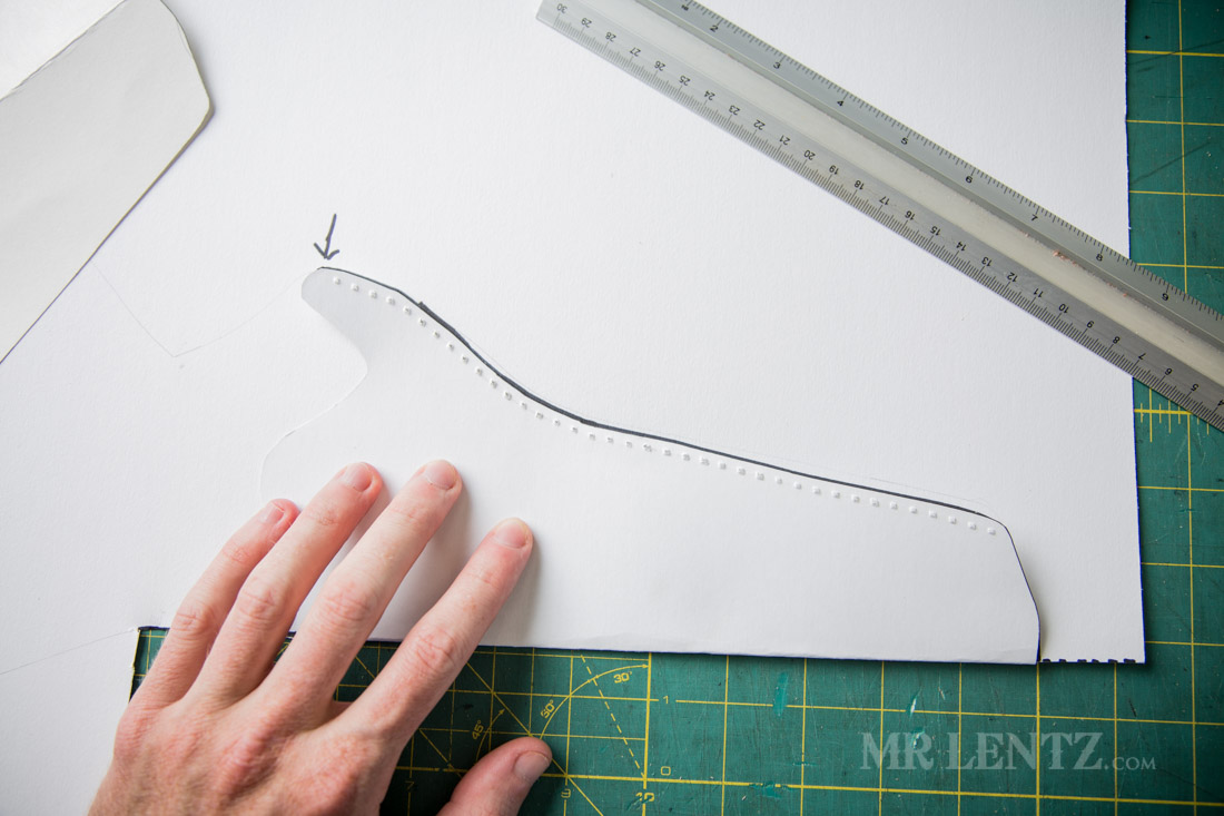 Here’s where you get a bit of artistic freedom. The dots I just made are a reference for where the edge of the holster should be for a decent fit – different types of guns may differ of course, so if yours is slimmer than a revolver, you may want to tighten it a bit. Anyhow – go ahead and trace a shape along those lines connecting the dots.