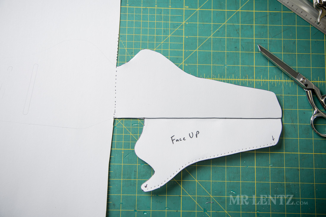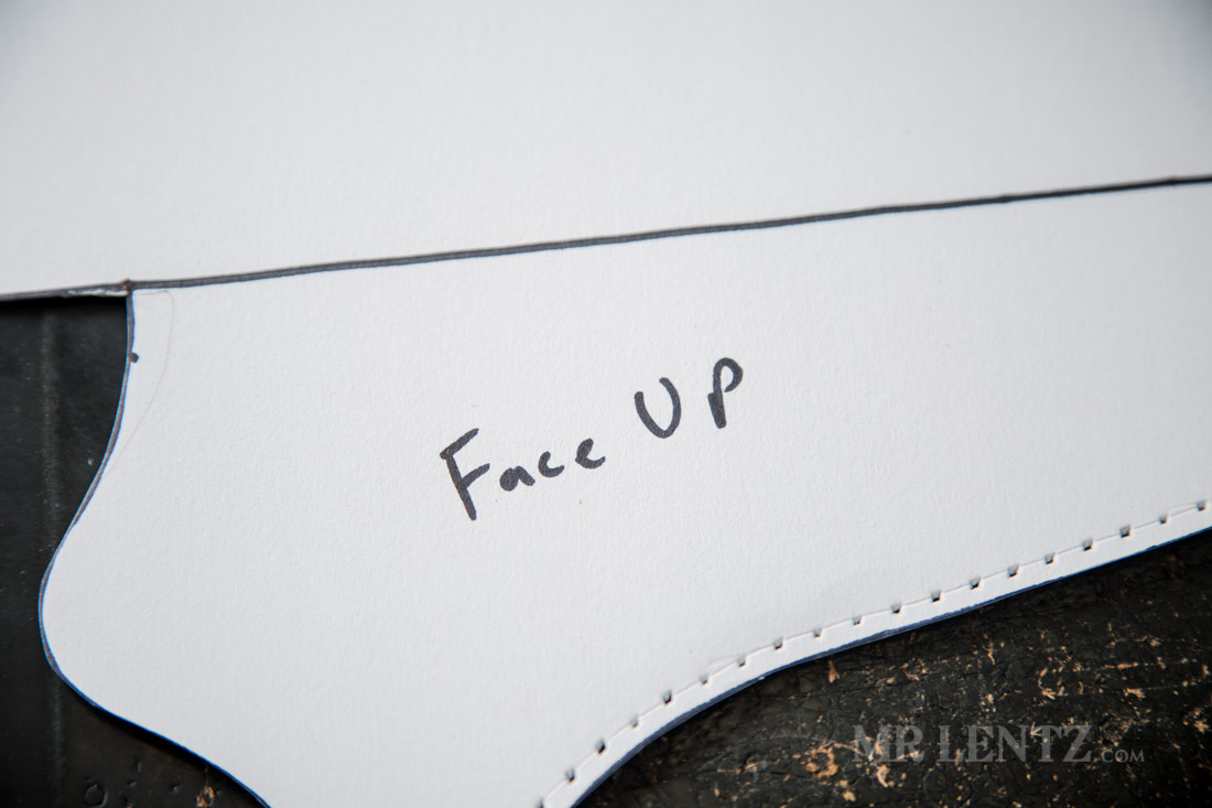 Ok – now’s where I save you from making a giant mistake later on down the line. Go ahead and write ‘Face Up’ on the outline. This means it’s the top of the template and should always face up when tracing onto the leather. There was a 50/50 chance of me getting that right the first time I made the holster, but as luck would have it I unfortunately traced everything upside down, resulting in a left handed holster. Of course now that I am sitting here thinking about it, that wouldn’t really have been such a big mistake since I intend to eventually make a double holstered belt.