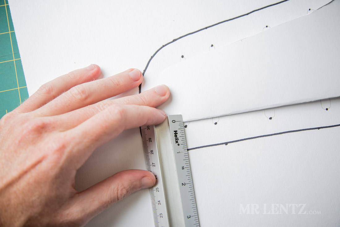 I then repeated that process on the other side of the skirt for the other end of those holes. However, I placed the dots slightly higher – to give the holes a bit of an angle – for looks of course! The holes can then be freehanded in place. Make the bottom two holes around 5/16″ wide and the top two around 3/8″ wide. Again, precision is not entirely necessary here.