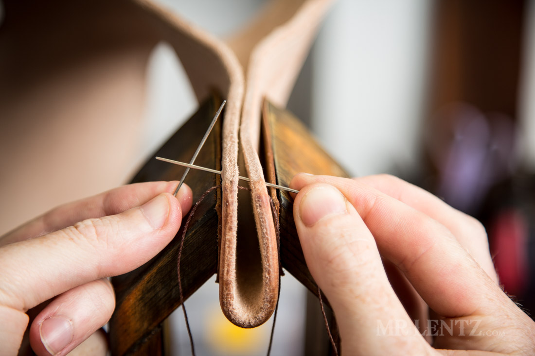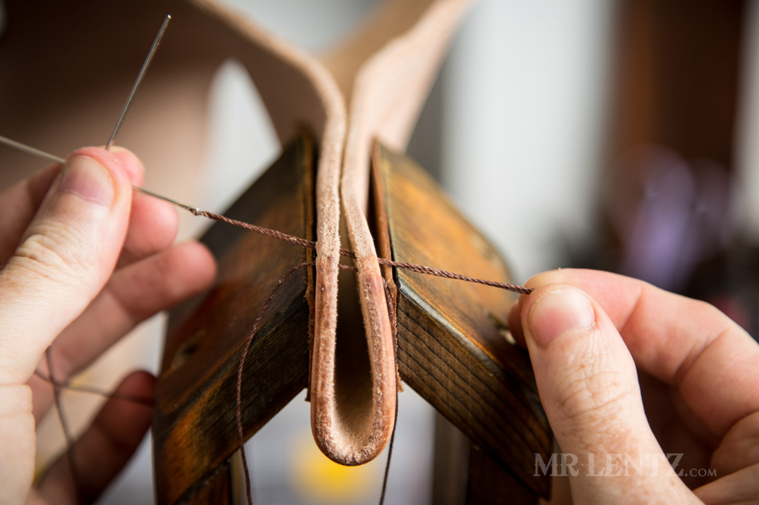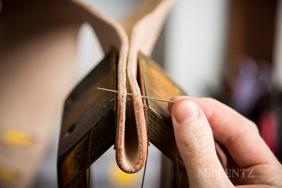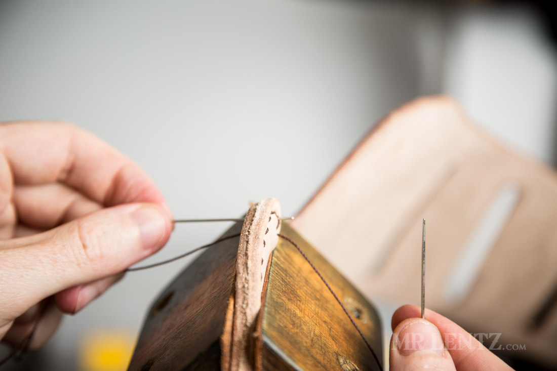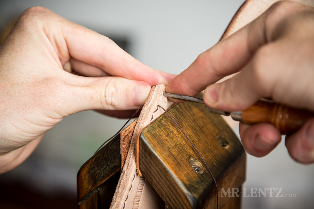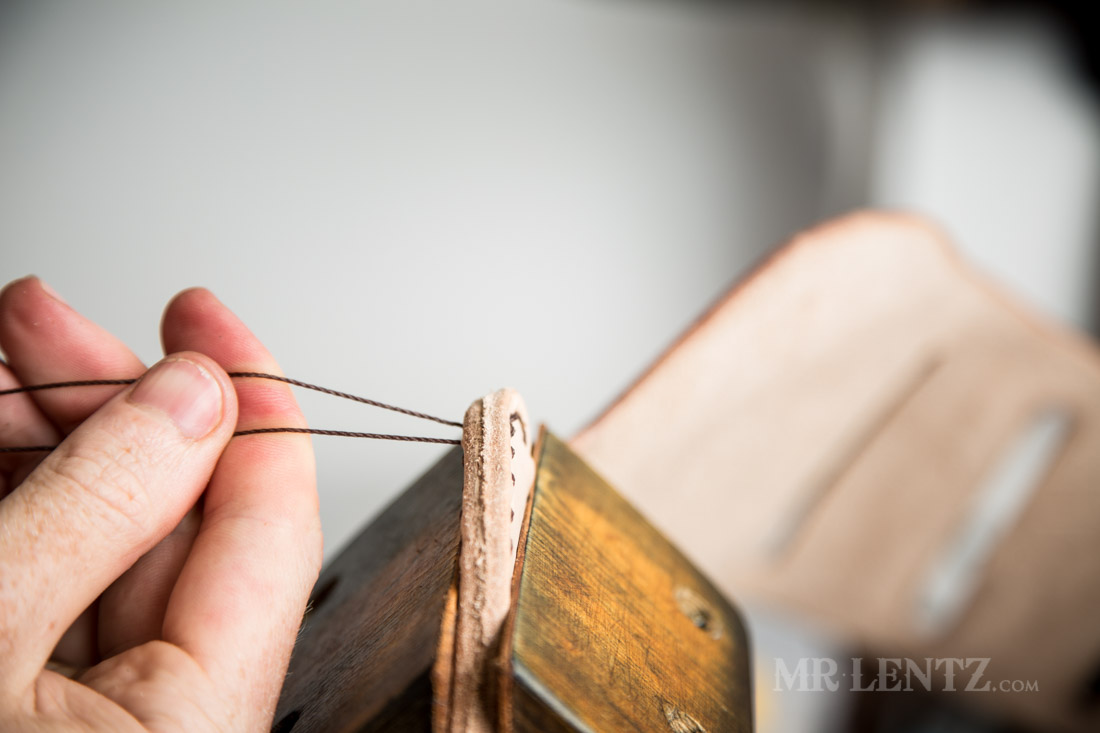 With all of the holes punched, I repeated the stitch all the way to the top of the holster. Now it’s time to finish up the stitches and lock them in.