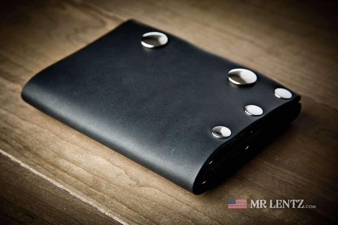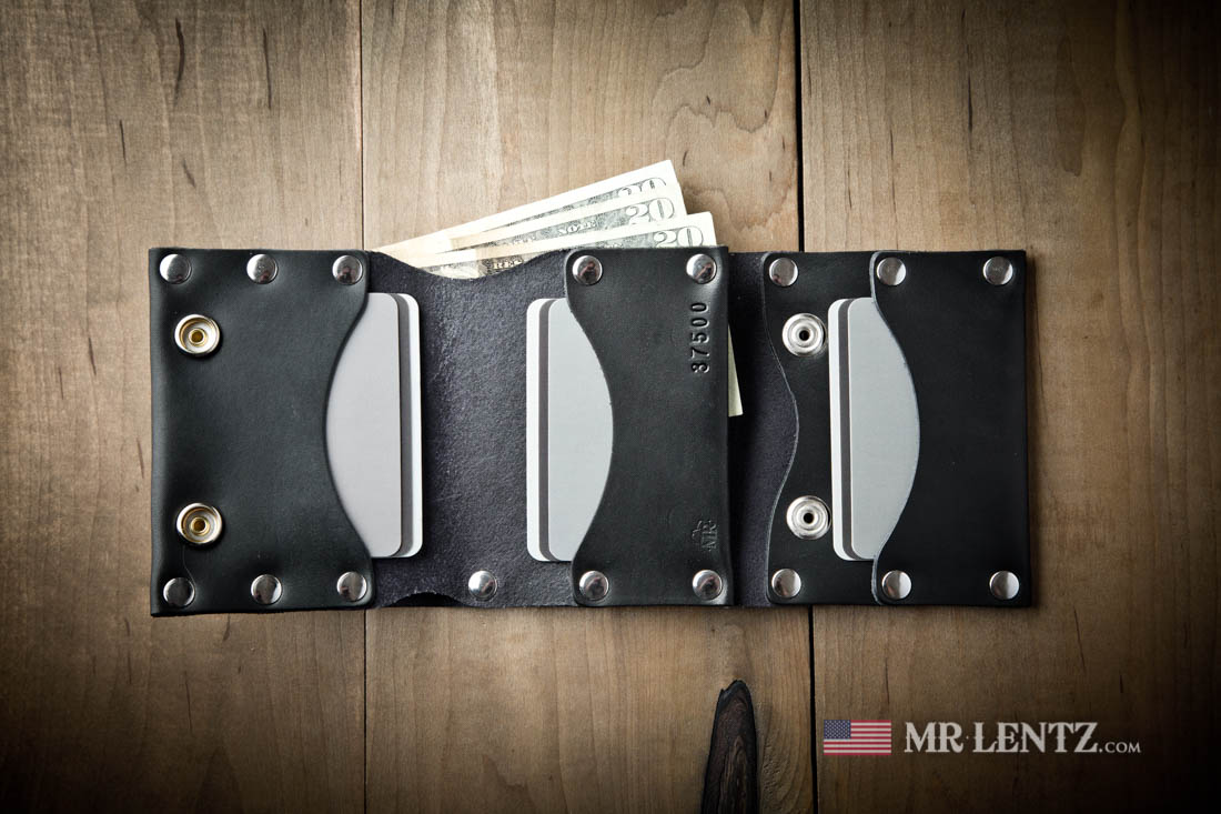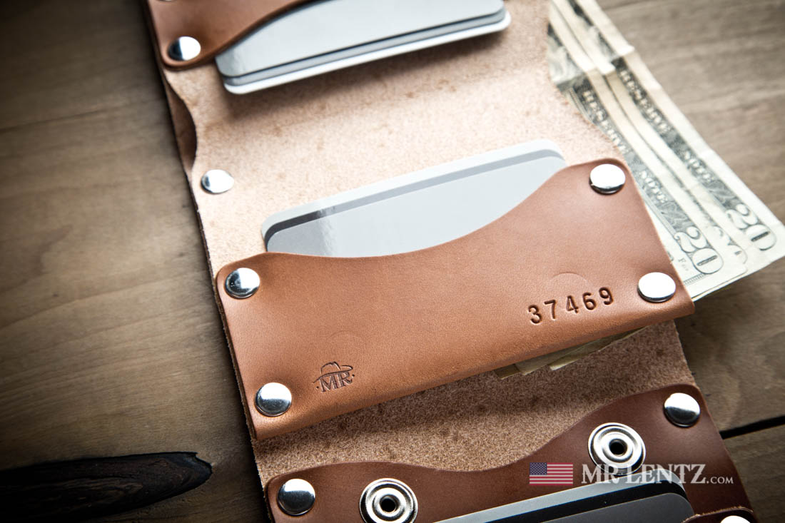 This Trifold wallet will fit quite a few cards. Designed to hold around 9 and up to 15 or more if you let the leather stretch, just note that the more cards you add to a pocket, the more that pocket may stretch. The bill section is large enough to hold any world currency. When closed, this wallet measures approximately 3.75 inches wide, 4.5 inches tall and 5/8 inches thick. Personalization on this wallet will go on the inside centered on the middle card pocket above the branded logo and pre-stamped number.