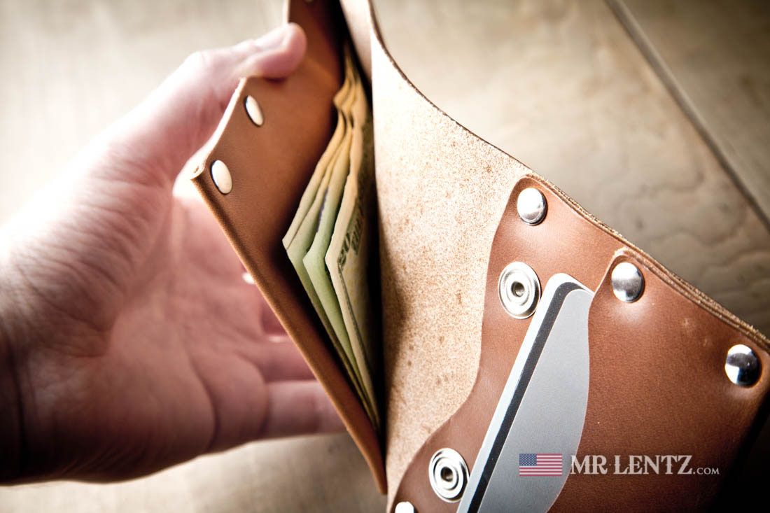 There is kind of a ‘secret pocket’ behind the right hand card pocket between the two snaps. It has no specific purpose, but you can fit small folded receipts in there too.