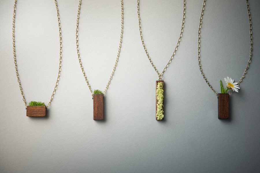 This piece allows you to pick your own flower or small succulent plant and display it in the miniature holder. Change it out every day to match your current outfit.
