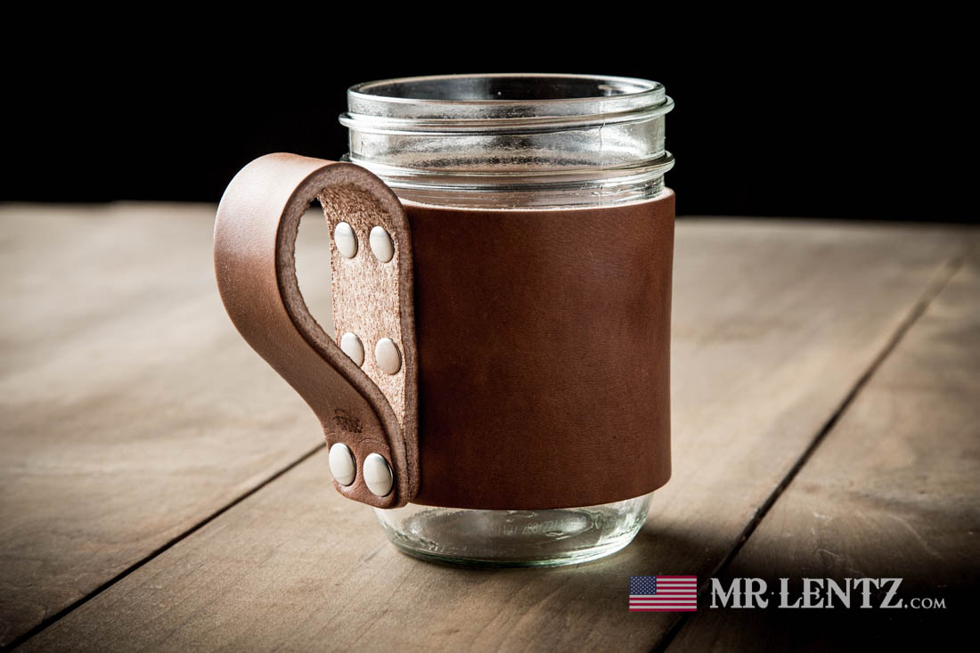 Comes with Ball 16oz Wide Mouth Mason Jars included. Personalization – optional personalization will be placed near the top center of the wrap, opposite from the rivet side.
