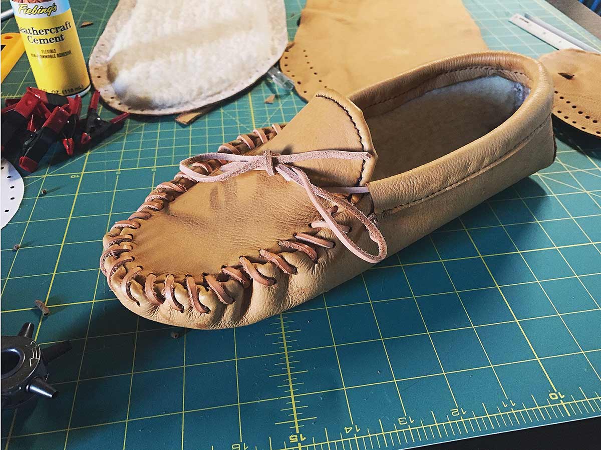 Coming into the new year I am working on some new moccasins to keep my feet warm. Now, technically I started these an entire year ago and gave up due to several technical complications. Well, I am happy to say that I finally figure out a way around those issues and have the right foot down below. I am photographing the entire process of making the left foot, so it will be a tutorial on the site within a few weeks time.