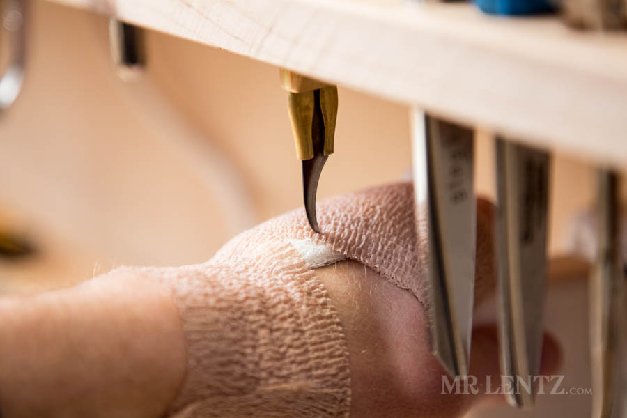 What I didn’t think of at the time, was that this also put my hand in danger of touching the business end of those tools. Specifically the well placed one below.