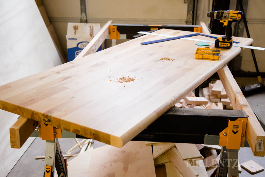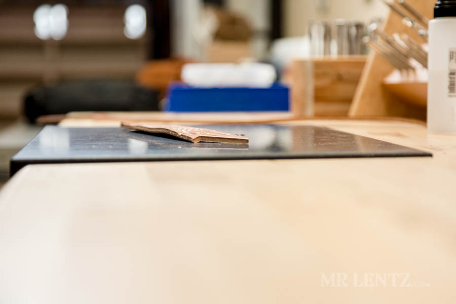 With the maple butcher block top delivered, I decided to finish building my leather tooling table. This isn’t a true butcher block of course, it’s the modern cheaper kind that most are familiar with. True butcher blocks are glued together with the end grain facing up. That old style of table top was actually commonly used in leather shops in the past. If I could find an affordable one I would have used it instead – you can cut right on top of those tops with ease. You can find Part 1 of this build here.