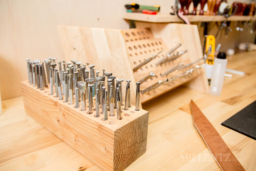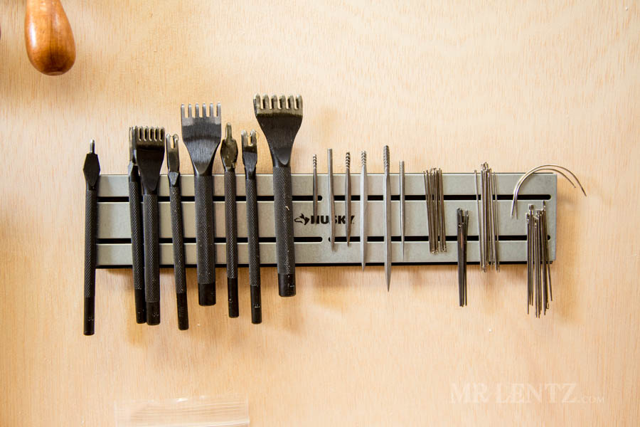 Magnetic tool racks are really handy to store some of the smaller items like needles. Although I am wondering if the single diamond awls might get their edges damaged from taking them on and off. I typically wont switch them out often, so it’s probably ok.