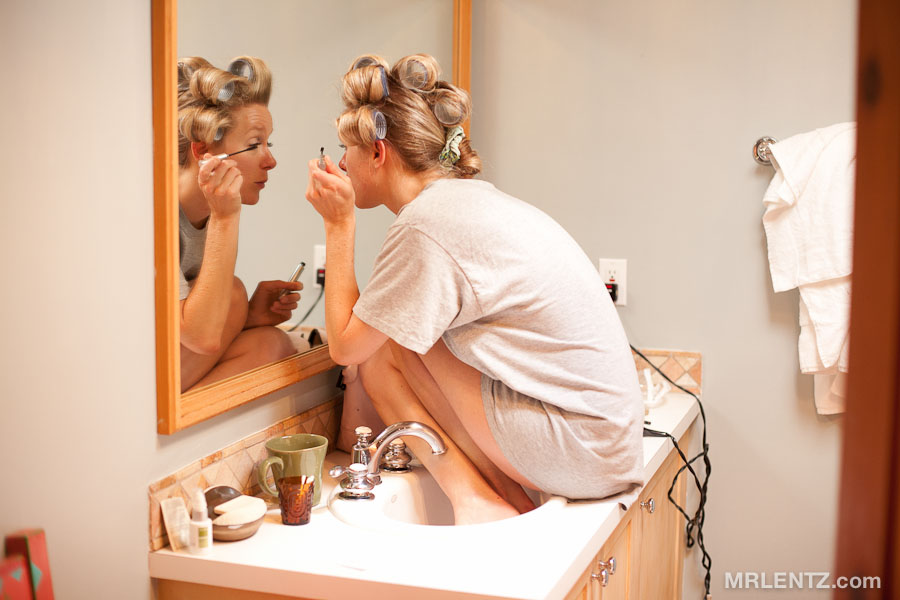 ^^A rare glimpse into the pre-shoot preparation session.