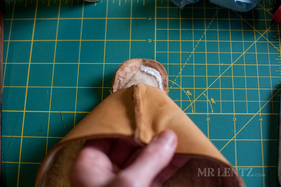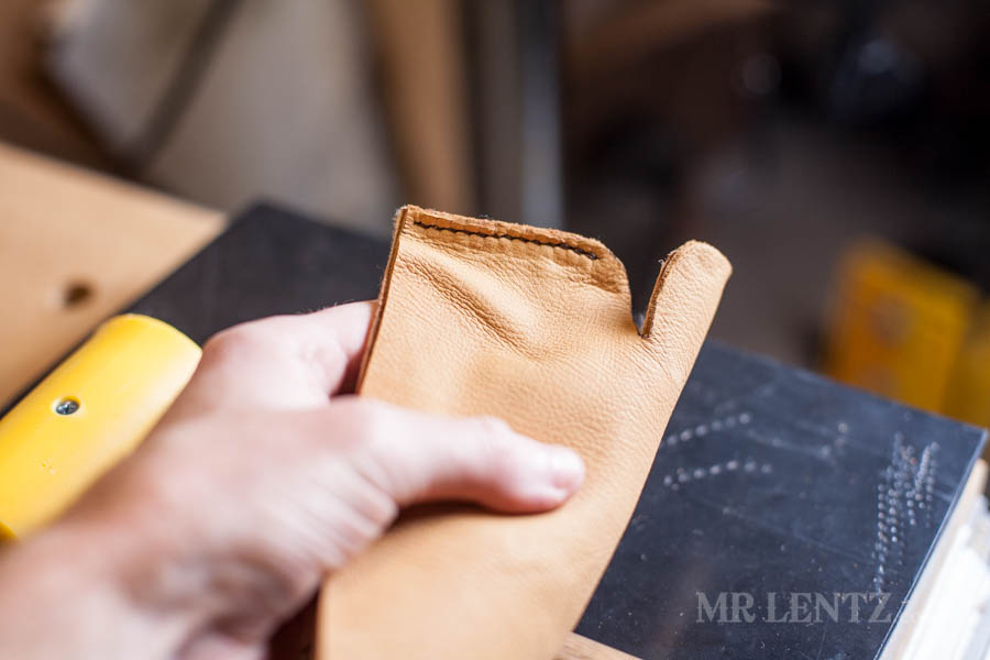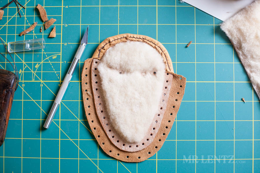 On the back side you will see there’s some excess deerskin extending out.