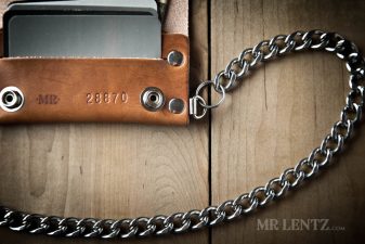 OPTION F – This chain combines my stainless steel version and a leather belt loop snap so you can fit it over any belt up to 1.75″ wide. The clips are very durable and made of solid brass with nickel plating. Designed to easily clip and unclip from your wallet. This is the top end of wallet chains.