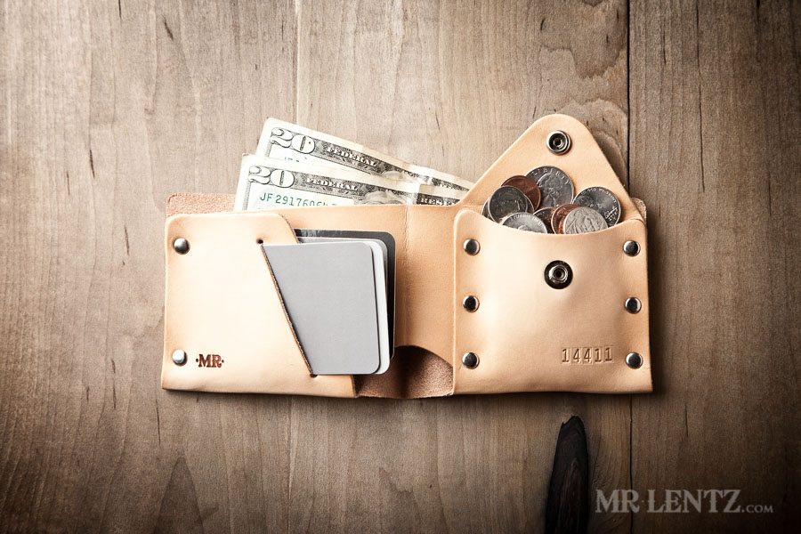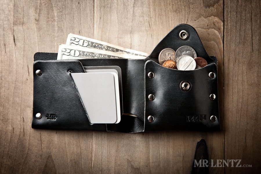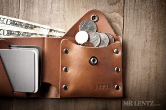 This wallet will fit 3 credit cards in the slot and 3 extra cards each in the pocket, up to 6 total overall. It’ll hold a fair amount of change, unless you plan to load up for the slot machines.