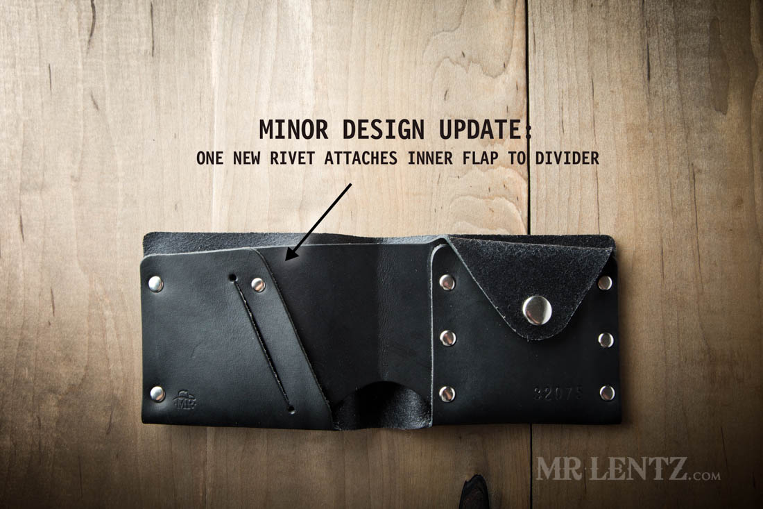 **Design Update: This wallet now features one extra rivet (not shown) on the inner flap connecting to the bill divider. It helps keep the back pocket tight for your cards.