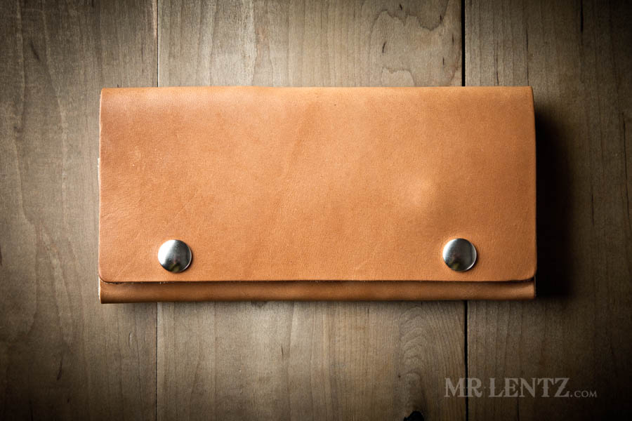 Please note that Mr. Lentz does not use any toxic materials in his shop or process and has chosen not to coat his leather goods with toxic water resistant sprays. He does use an all natural mixture of olive oil and beeswax to help with water resistance, but water on the outside of the case is best avoided to prevent spotting. You may choose to coat your messenger bag with water repellent sprays as needed.
