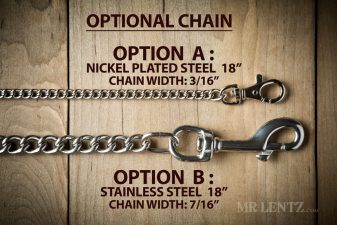 OPTION B – A nice heavy weight chain made of stainless steel with a stainless steel clip. Measures 18 inches long and a chain width of 7/16″ wide.