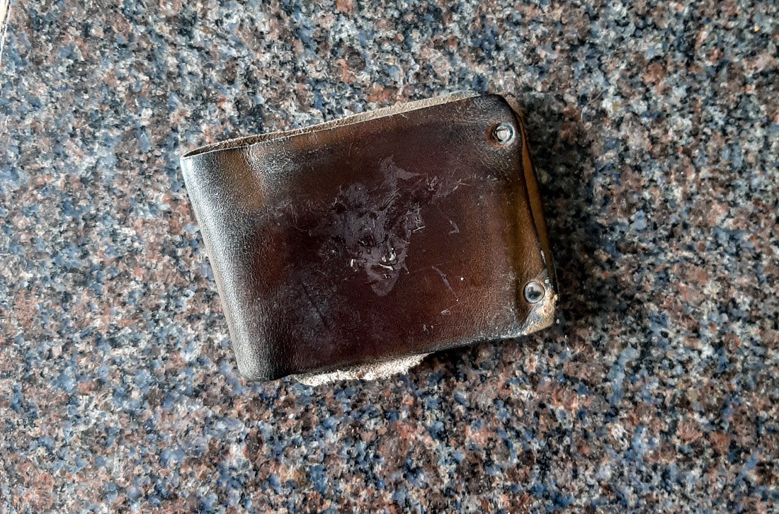 The other day I received a very interesting email from a customer. Apparently my Full Grain leather wallets are good for much more than holding cash…in the case of Owen M. they can literally save your ass. In his words: