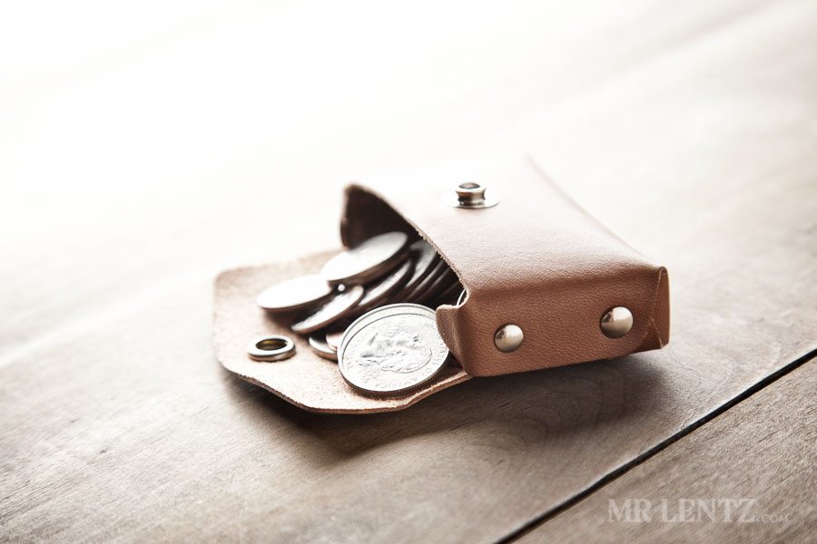 A decent handful of change will fit in this leather coin purse. Small enough to fit in your pocket and strong enough to last a long long time. The solid brass snap will keep this little coin purse closed up tight. Drop it in your bag for extra organization.