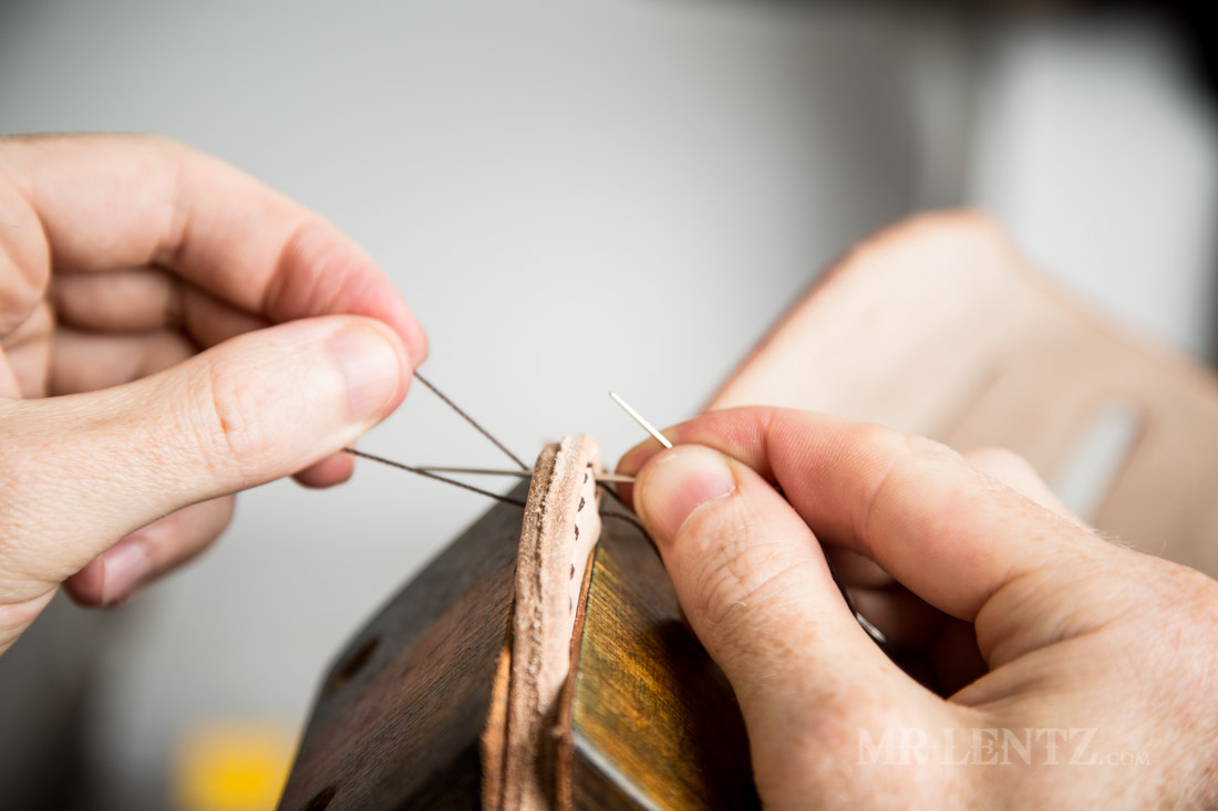 With all of the holes punched, I repeated the stitch all the way to the top of the holster. Now it’s time to finish up the stitches and lock them in.