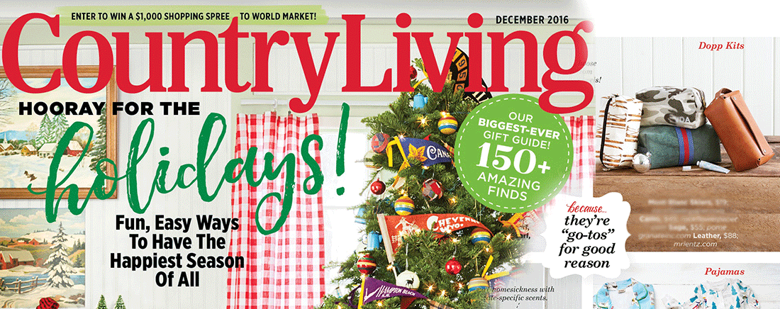 Mr. Lentz gets a surprise feature in Country Living magazine for the 2016 Holiday Edition. They chose to showcase his original design of the Mens Toiletry Bag.